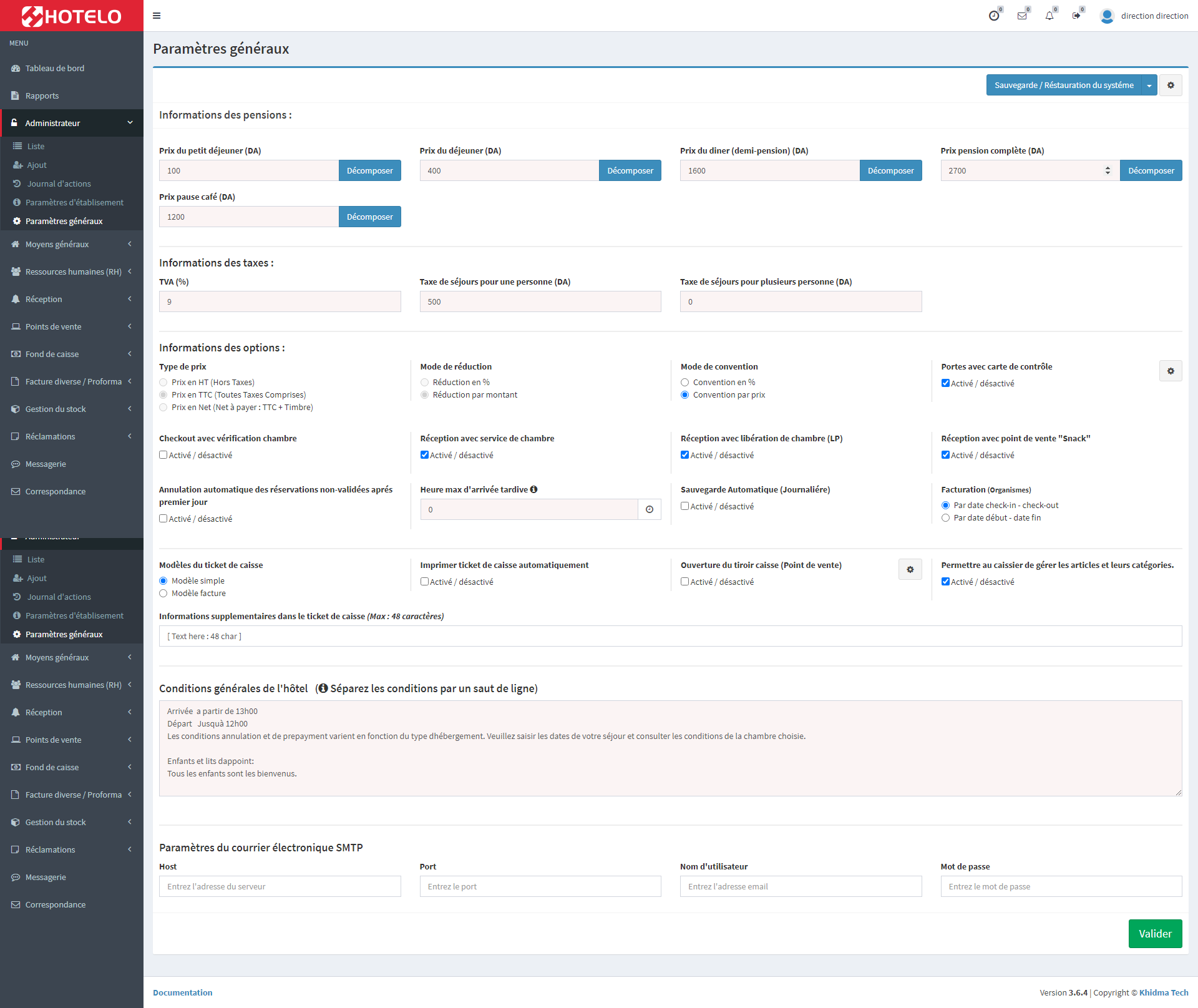 Le composant "Paramètre d'établissement" est l'endroit où les informations sur l'hôtel peuvent être modifiées, ces informations sont :