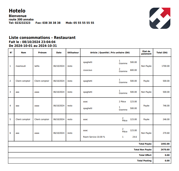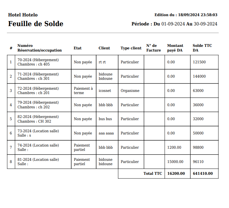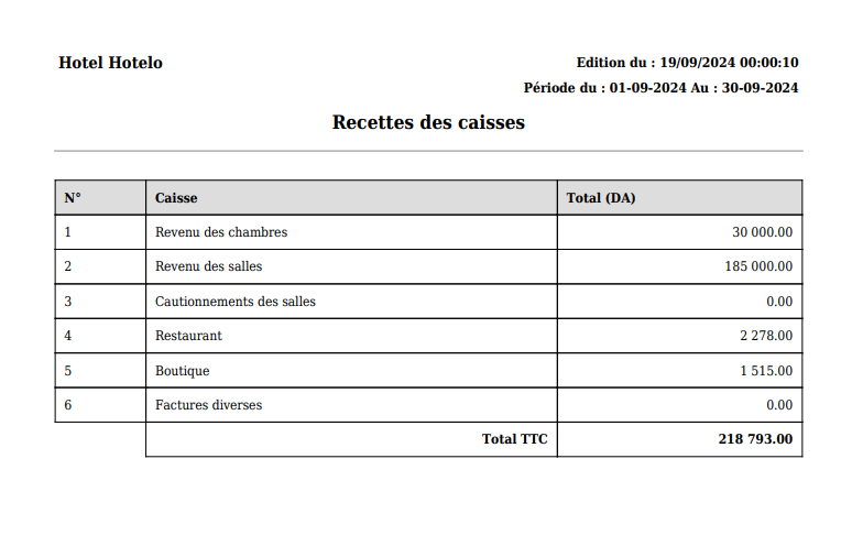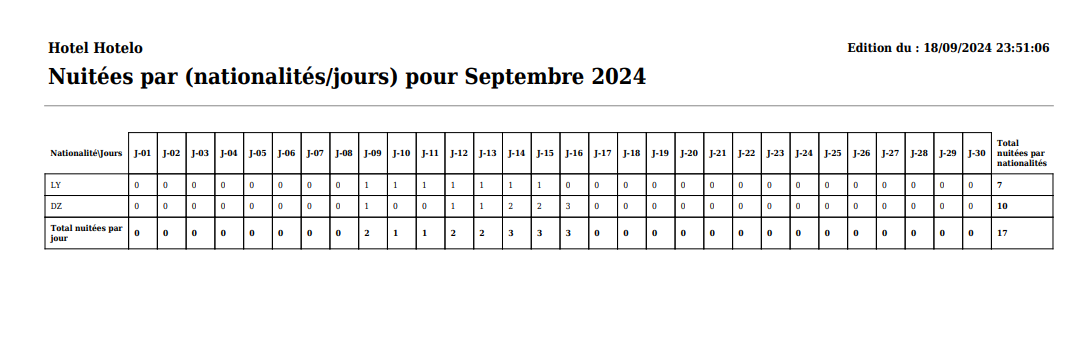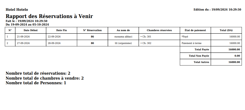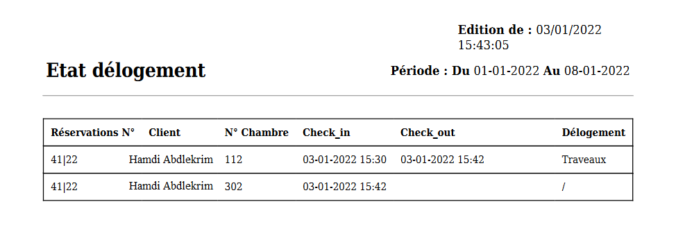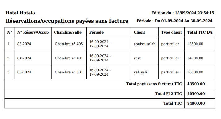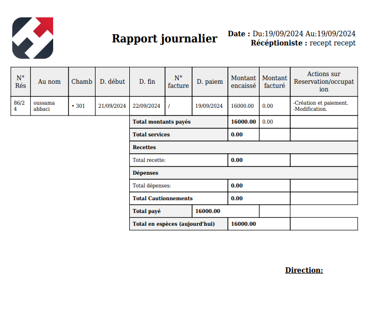 Ce rapport est disponible seulement si le receptioniste n'a pas un point de vent