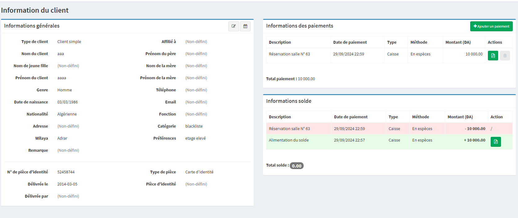 PS: Vous pouvez classer vos clients par catégorie, les categories sont donnés par la récéption pendant la création d'un client.