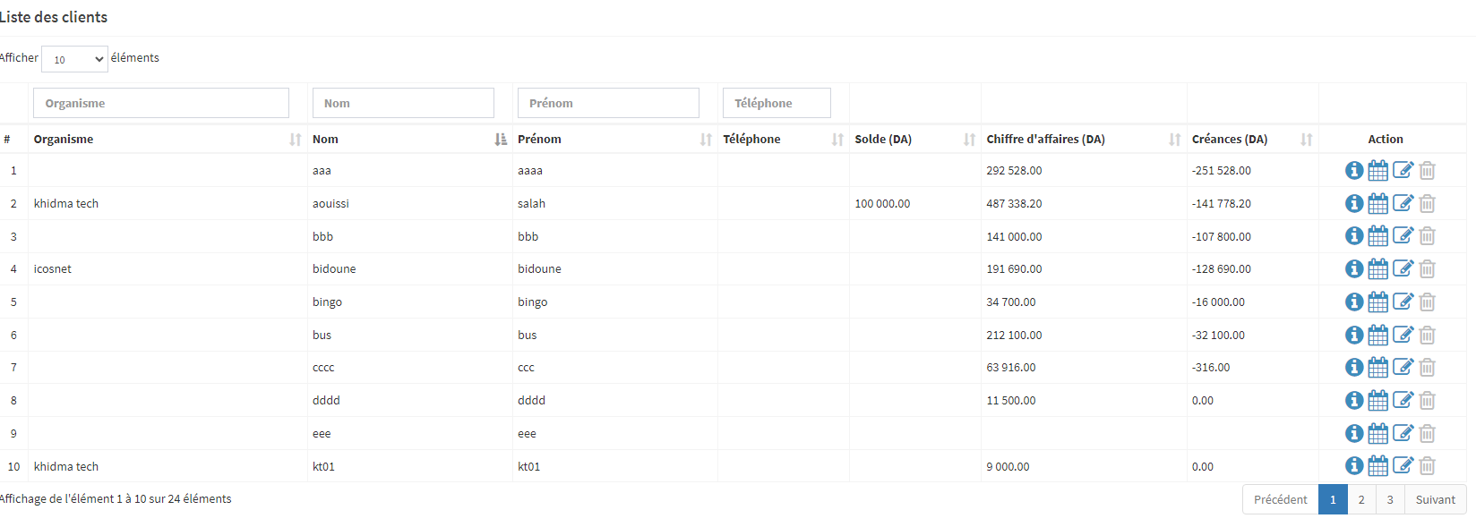 PS: La suppression des clients se fait uniquement par le chef réceptioniste ou l'administrateur.
